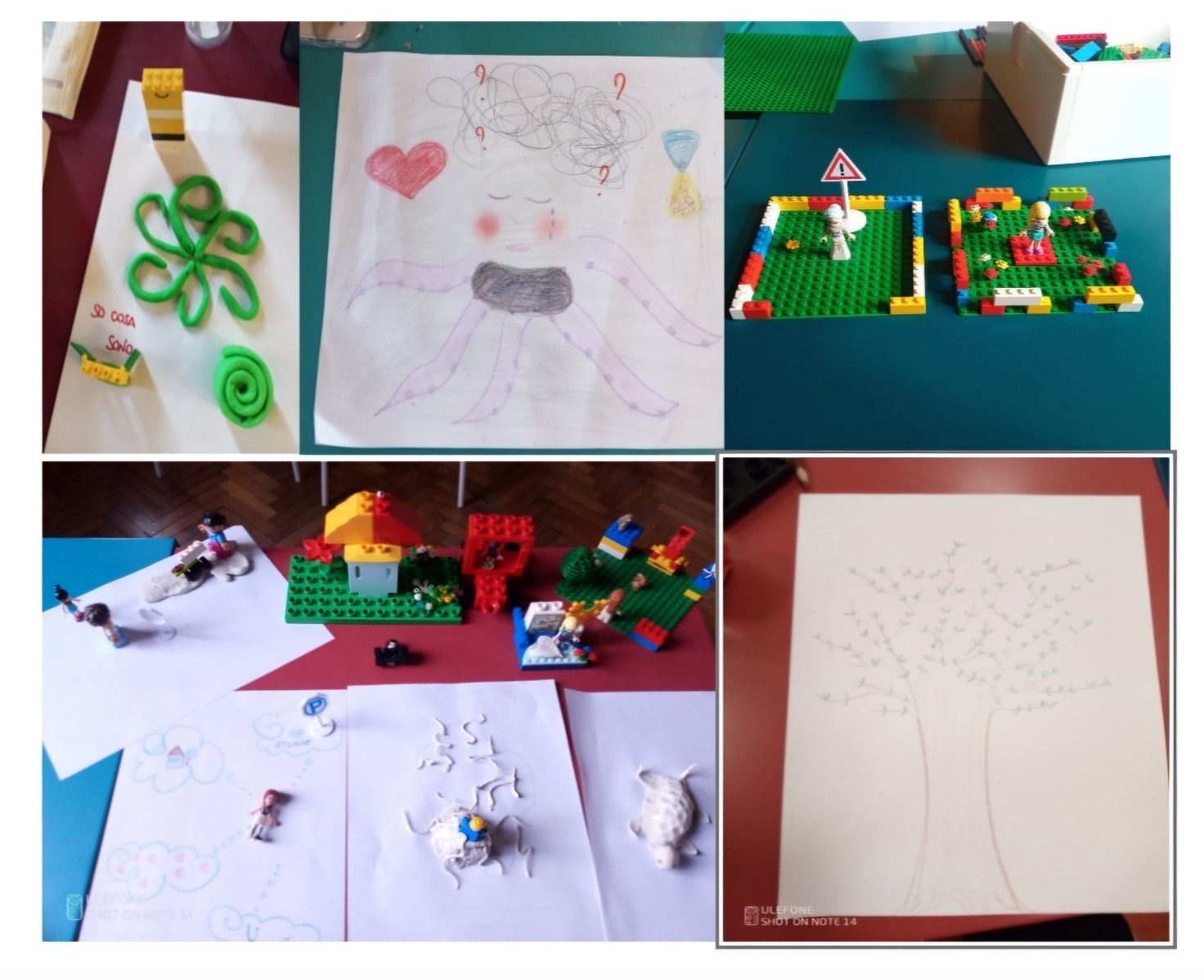 A partire da questi interrogativi, si sviluppano attività che prevedono la rappresentazione simbolica dell’identità attraverso materiali artistici e manipolativi (disegno, colori, pasta modellabile, immagini, costruzioni) (Figura 2). Gli studenti sono invitati a creare una forma che rappresenti la propria identità in evoluzione, a esplorare come percepiscono quella altrui, e a nominare le caratteristiche della professionalità che sentono più vicine o più distanti. Questo tipo di lavoro, altamente simbolico, consente di integrare la dimensione cognitiva e quella affettiva, attivando un processo riflessivo profondo e spesso inaspettato. La manipolazione di materiali, infatti, rappresenta non solo un momento creativo, ma un vero e proprio strumento pedagogico, capace di attivare conoscenza tacita e costruzione condivisa di significati (Kim e Lee, 2024).